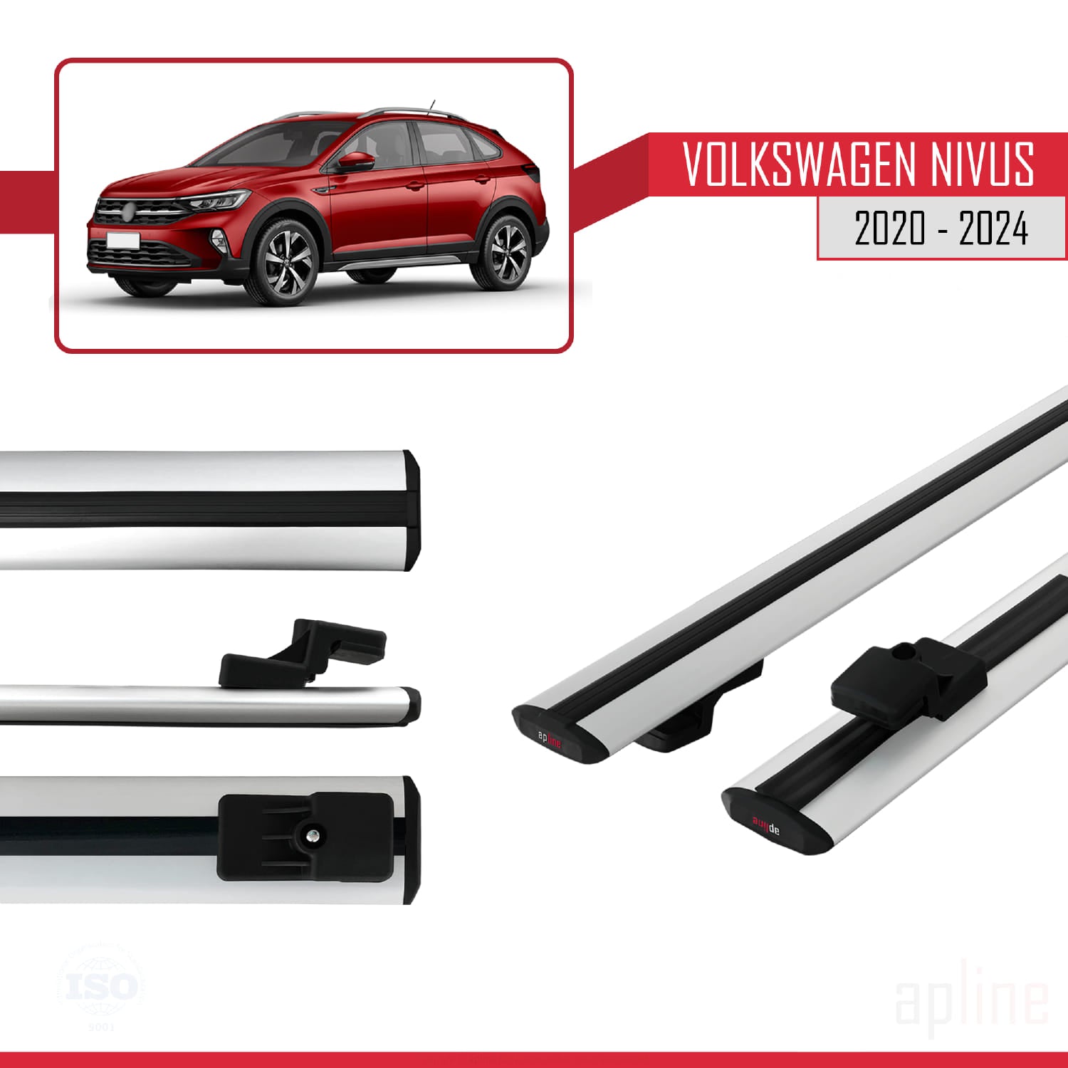 Compatible avec VW Nivus 2020-2024 BASIC Model Barres de Toit Railing Porte-Bagages de Voiture Gris Aluminium 2 Barres